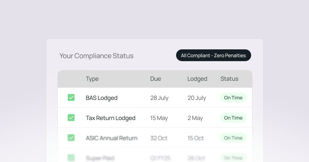 We lodge your BAS, pay your staff, prepare tax returns, and handle ASIC requirements. Consider it done.